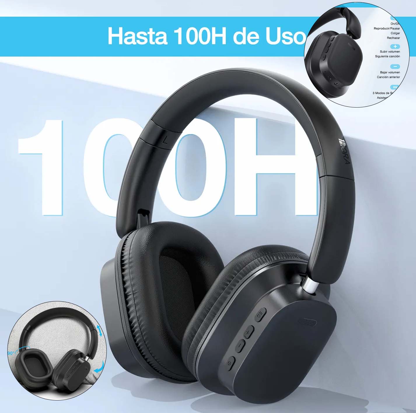 Audífonos Inalámbricos On-ear 1hora Micrófono Para Llamadas Color Negro AUT250(PAQUETE DE 12PC )