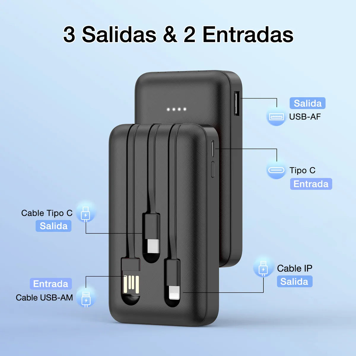 Power Bank Mini Portátil BaterÃa 5000mah Con Built In 3 Cables 1hora Usb C Baterias Para Celular GAR261(PAQUETE DE 10PC )