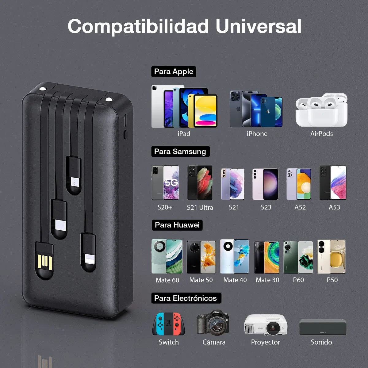 Power Bank 20000mah BaterÃa Portátil Con 4 Cables Con Pantalla Digital 1hora GAR159(PAQUETE DE 10PC )